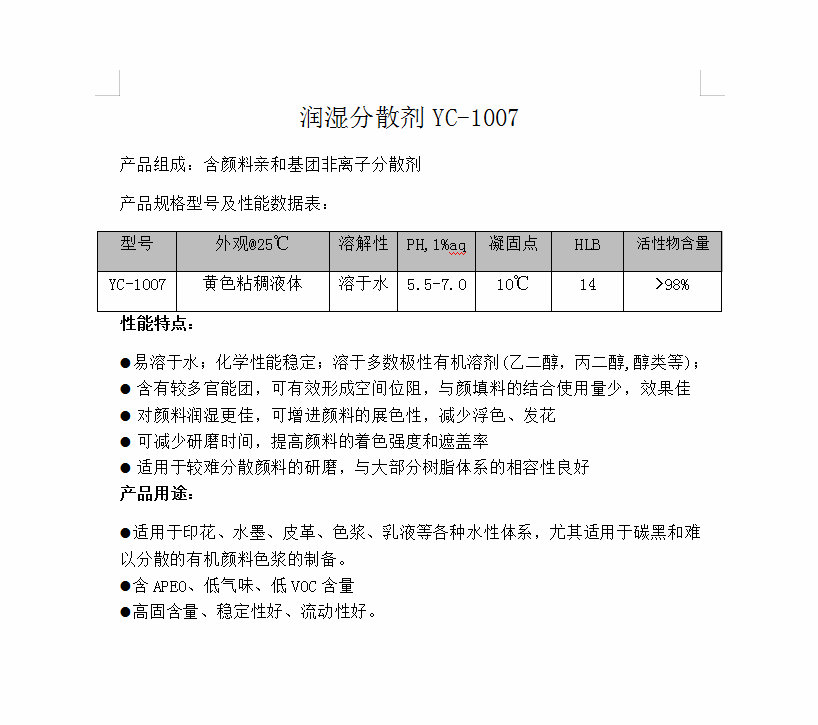 经济型水性有机颜料炭黑色浆分散剂YC-1007