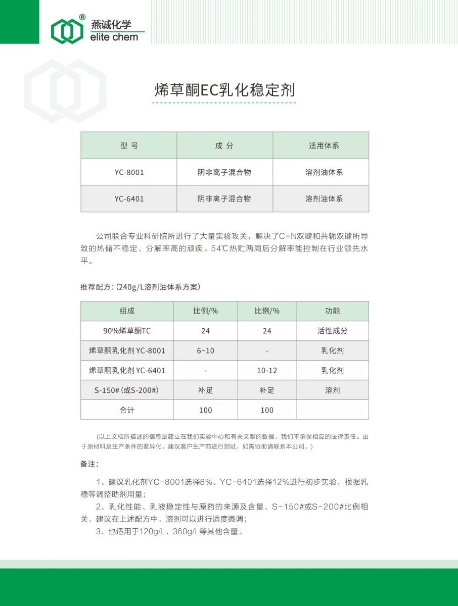 烯草酮EC乳化稳定剂YC-8001